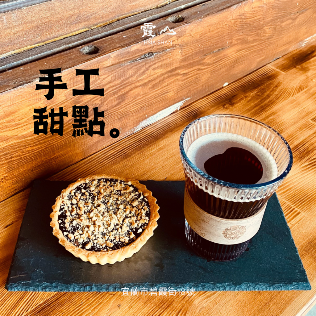 凡購買霞山「巧克力塔」的朋友,加點飲品可以折價五元喔!