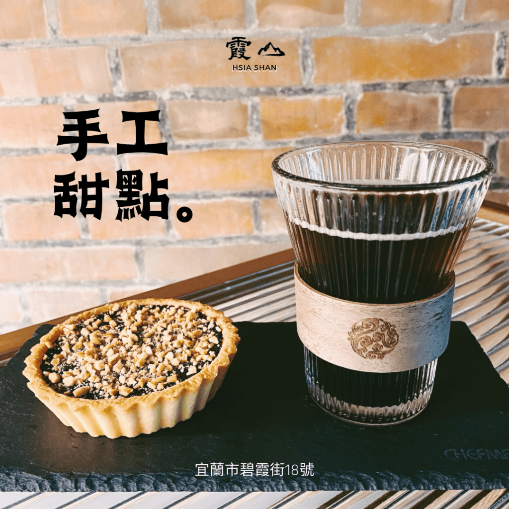 凡購買霞山「花生脆脆巧克力塔」的朋友,加點飲品可以折價五元喔!