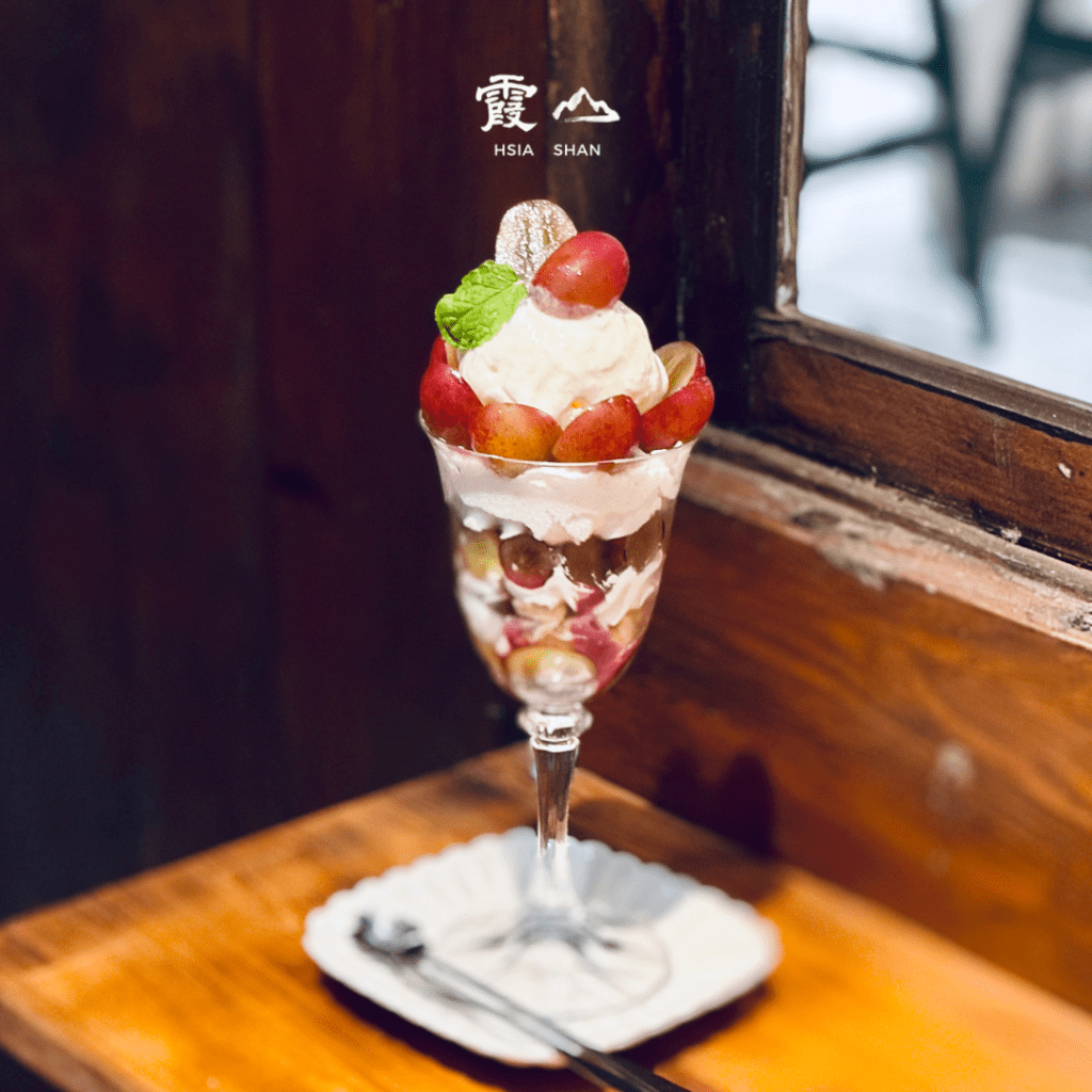 選用美國糖果葡萄,結合葡萄雪酪、鮮奶油、堅果脆果與北海道牛奶冰淇淋的秋天滋味